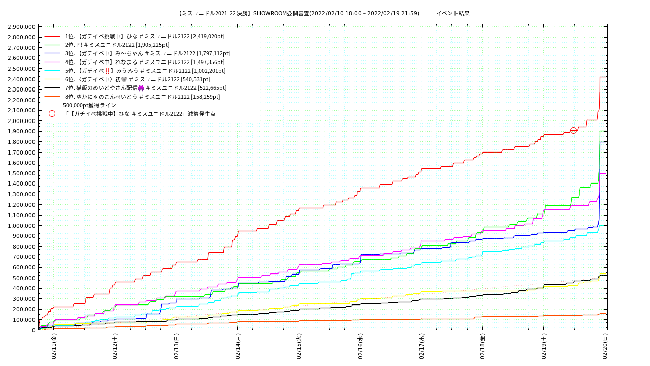 減算発生日時: 2022/02/19 11:36:01, 減算後ポイント: 1910171 (216ポイント減算)