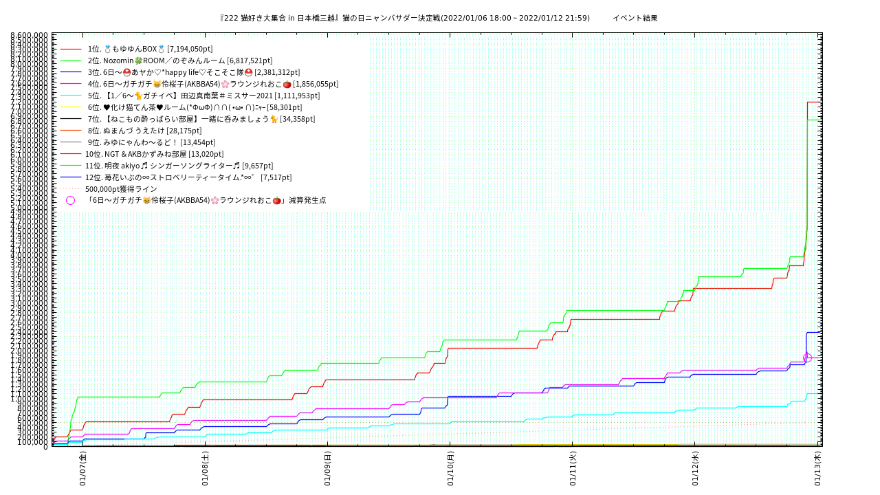 減算発生日時: 2022/01/12 22:00:20, 減算後ポイント: 1856055 (118334ポイント減算)