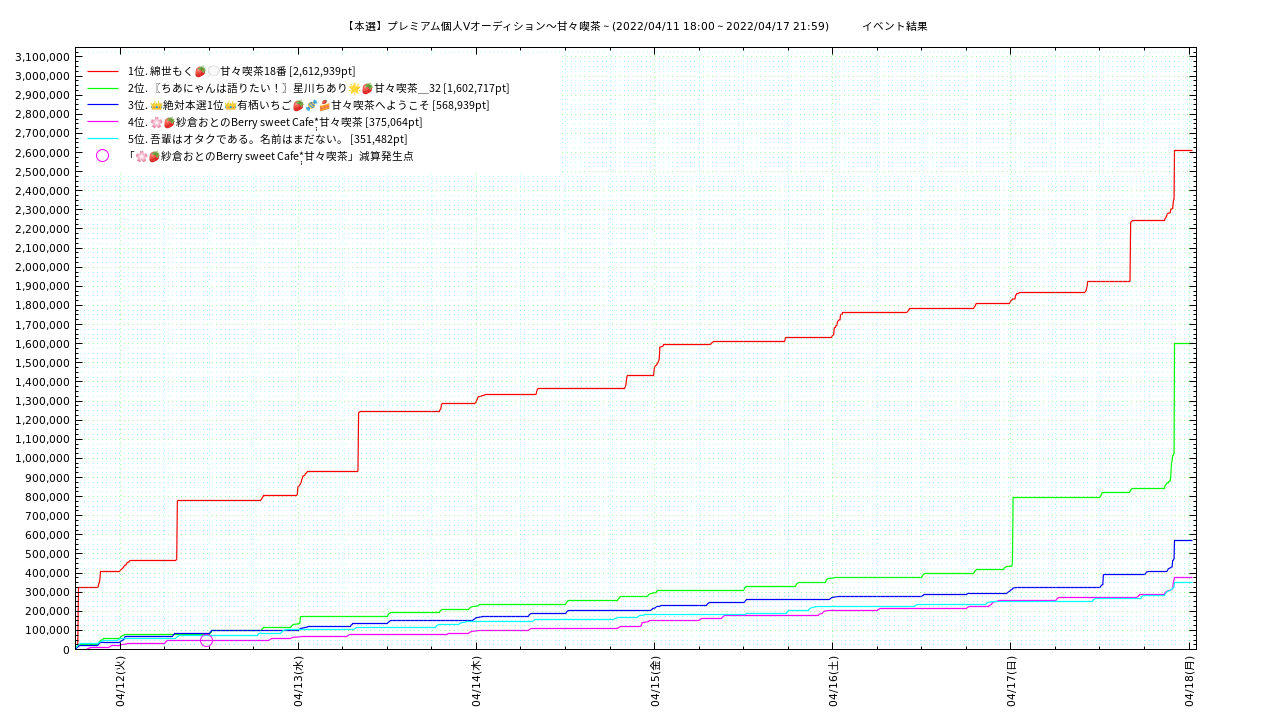 減算発生日時: 2022/04/12 11:38:01, 減算後ポイント: 46070 (651ポイント減算)